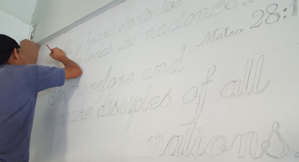 So we had one of the youth come over. First he drew quadrants and sketched out the words.