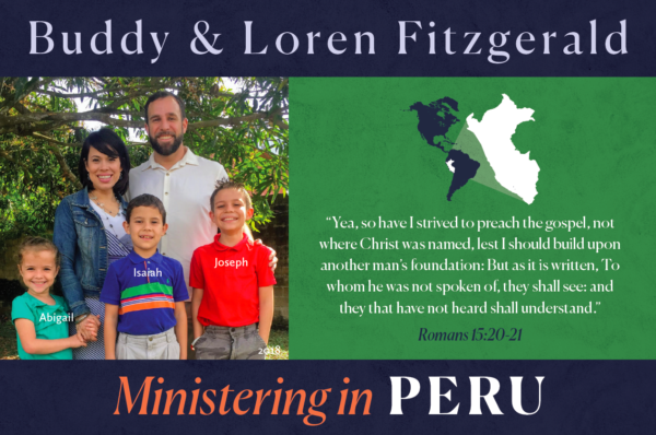 Please pray for a national pastor, for strong church leadership, for our building to be finished, and for the opportunity to take the Gospel to the unreached tribes in Peru.